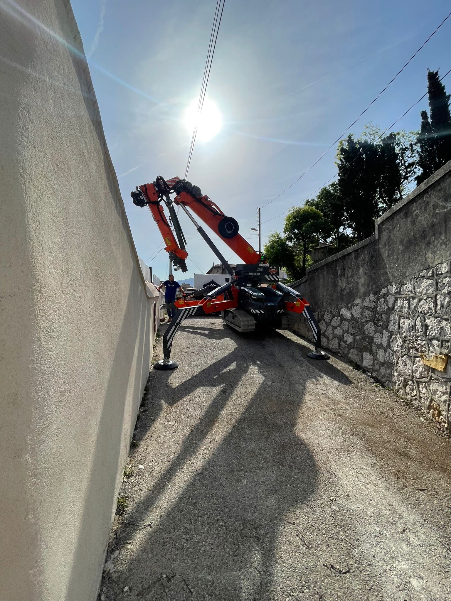 Une fois de plus, même avec un accès restreint, notre mini-grue nous prouve toutes ses capacités grâce à son multi-calage des pieds stabilisateurs.