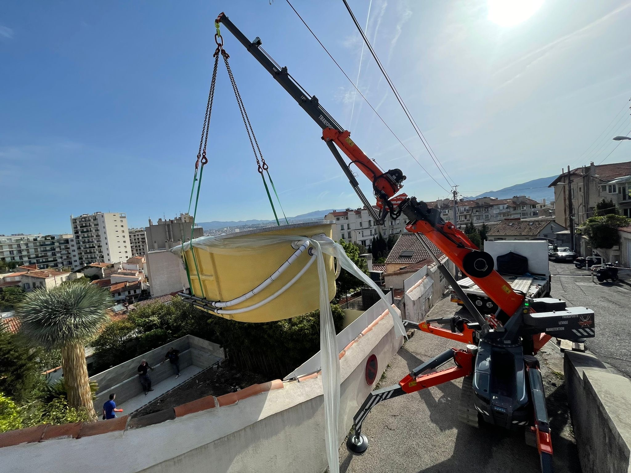 Pour cette intervention, nous avons procédé à la mise en place d’un spa de 900 kg sur Marseille.