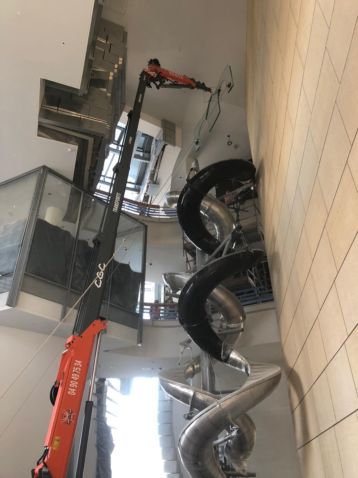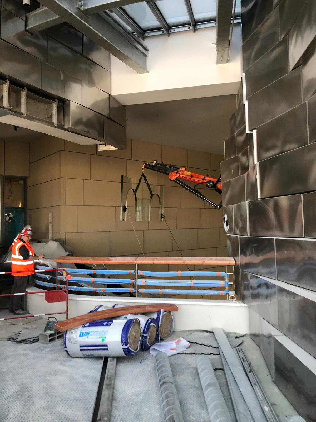 Ce vitrage a été posé à 15 mètres de hauteur, avec une accessibilité et dégagement très restreint.